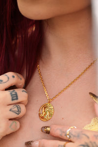 Inspired by classical art and mythology, the Venus Goddess Necklace symbolizes self-love, confidence, and feminine power. The intricately crafted pendant is paired with the bold L’ERA Link Chain, creating a statement piece that enhances any look, whether worn alone or layered.